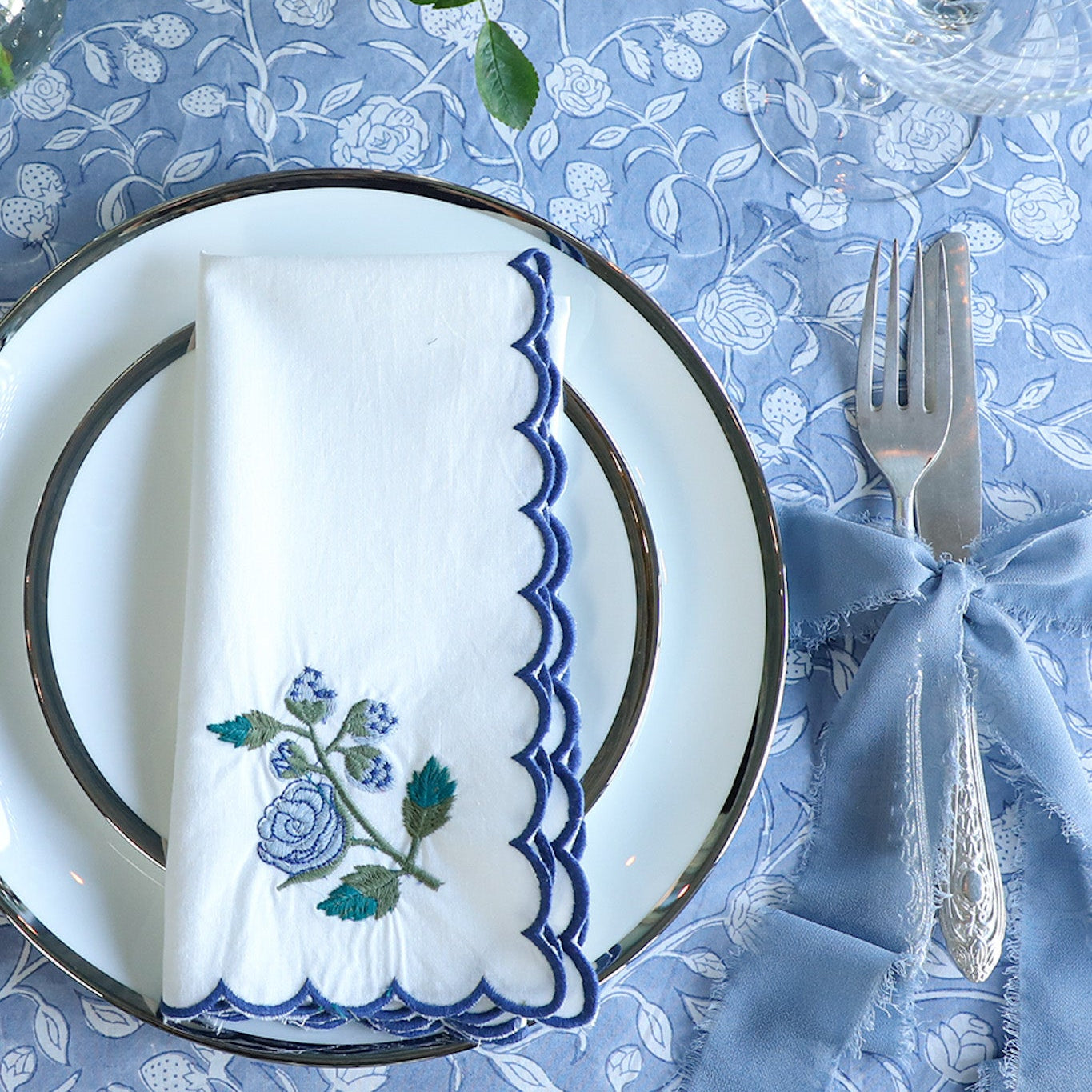 "Inspired by evenings on her terrace in Jaipur, Rosanna Falconer's first collection includes smart bougainvillea adorned napkins."