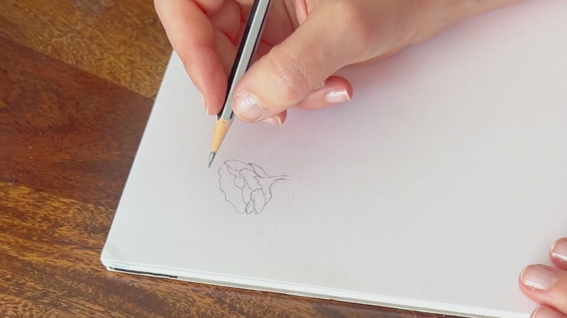 This print began with a bouquet I arranged last winter. I loved the combination of midwinter flowers and foliage: ranunculus, hellebore and myrtle berries intertwine with evergreens.