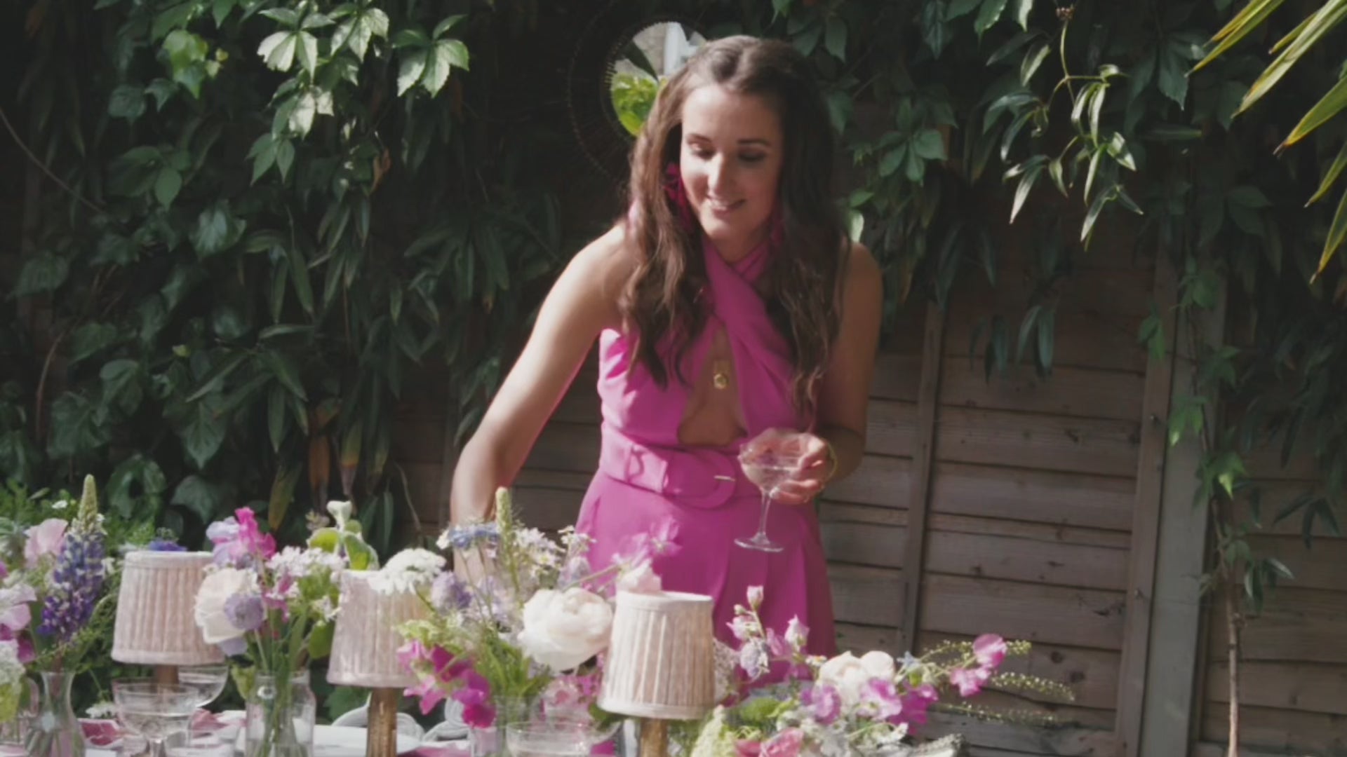 "I created the floral centrepiece in jam jars with lupins and spiraea for height, Emma Woodhouse garden roses as heroes then sweet pea, poppies and scabiosa for pops of colour. The roses and mint scented the air, echoed in Rachel Vosper's Scent 7 which I burnt on the table."