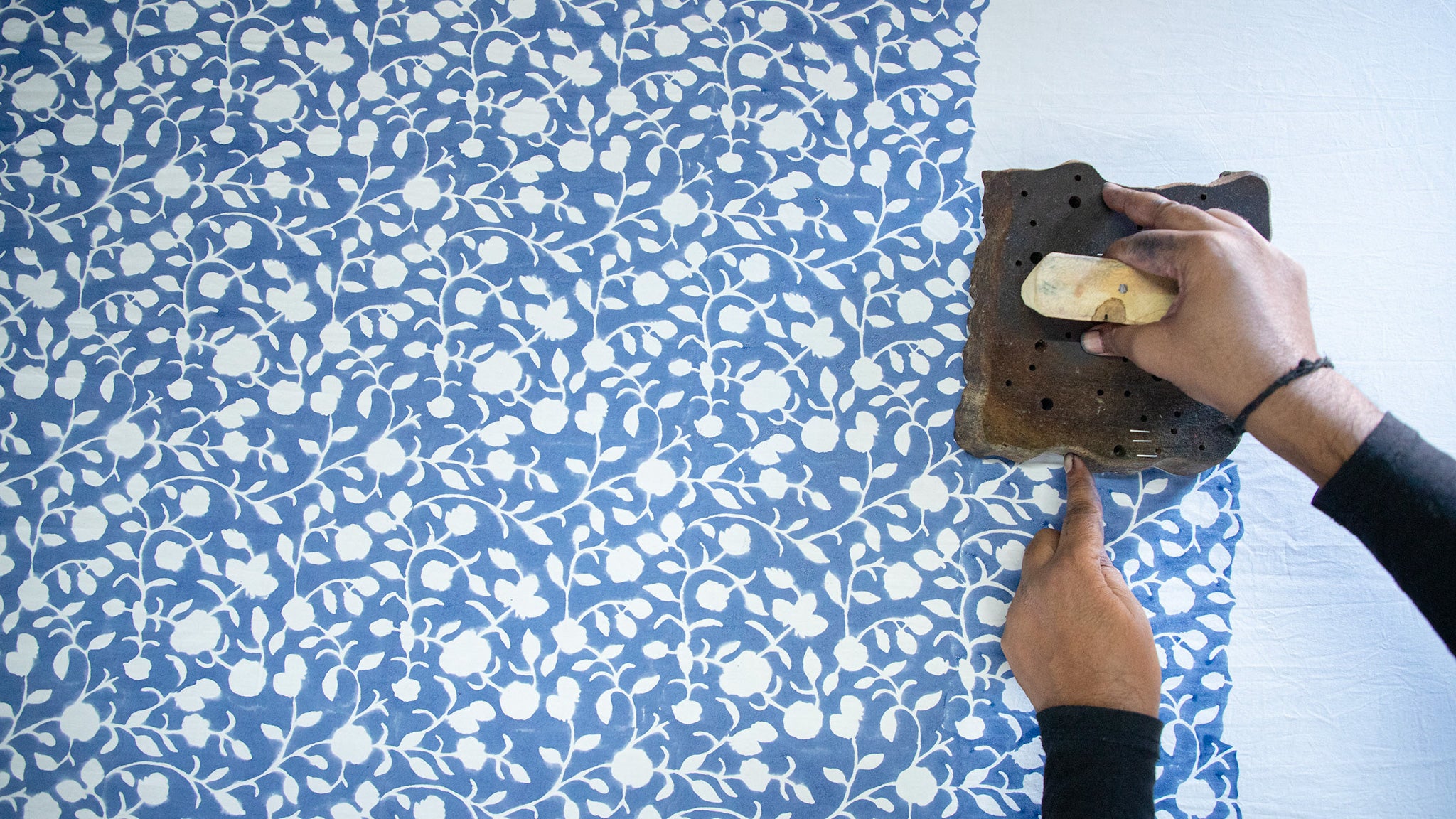 A step behind-the-scenes to the block printing studio as the our new blue design goes to print. Part of the Roses & Berries collection, it is a deliciously soft slate blue and an utterly classic shade.