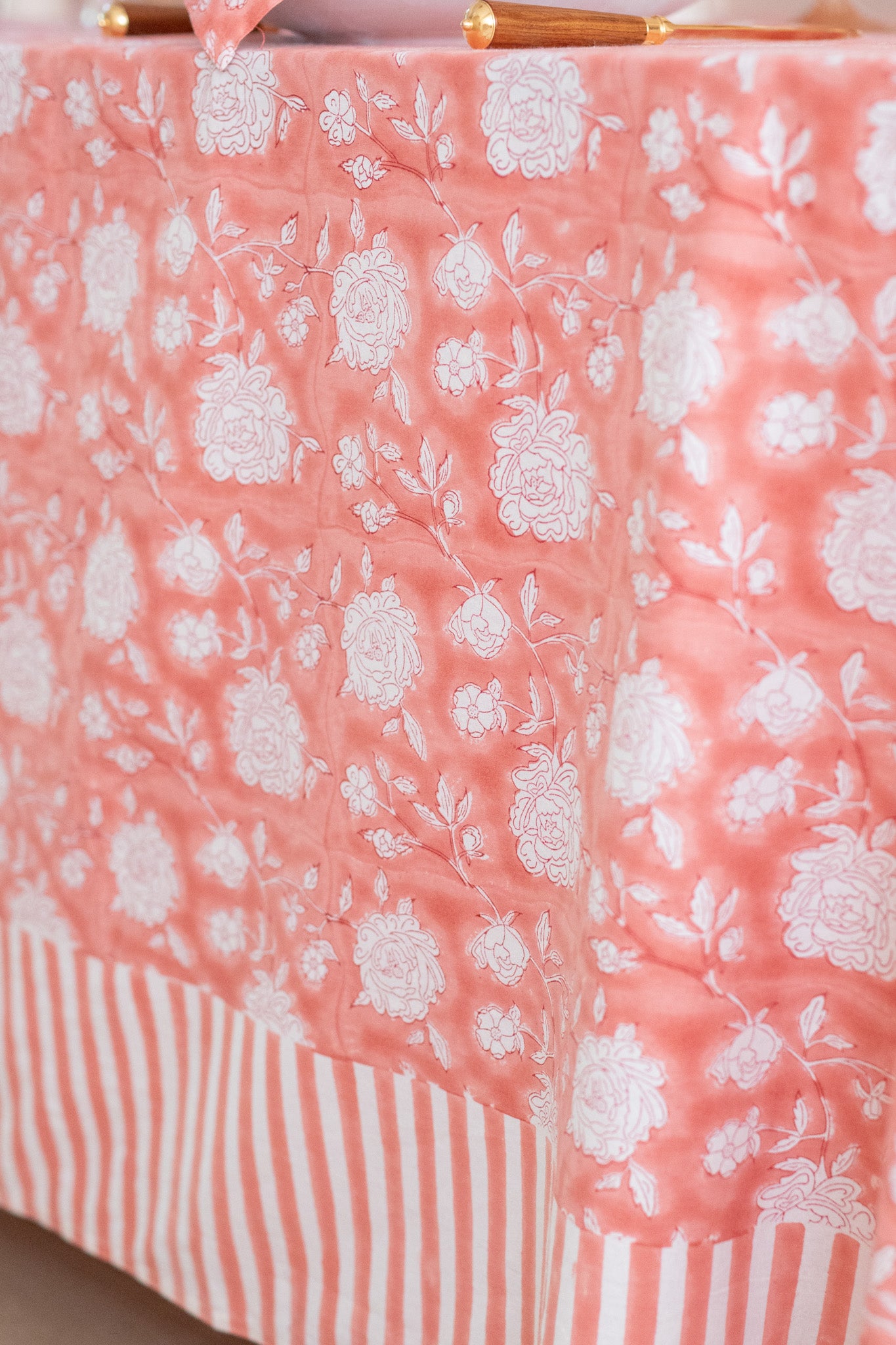 Two great loves collide in this new set of table linens: the Pink City and peonies. Coral Charm peonies - the first of the season - undergo a unique colour transformation. They change from bright pink to peach to a faded lemon as they mature. For me, it is a palette reminiscent of Jaipur.