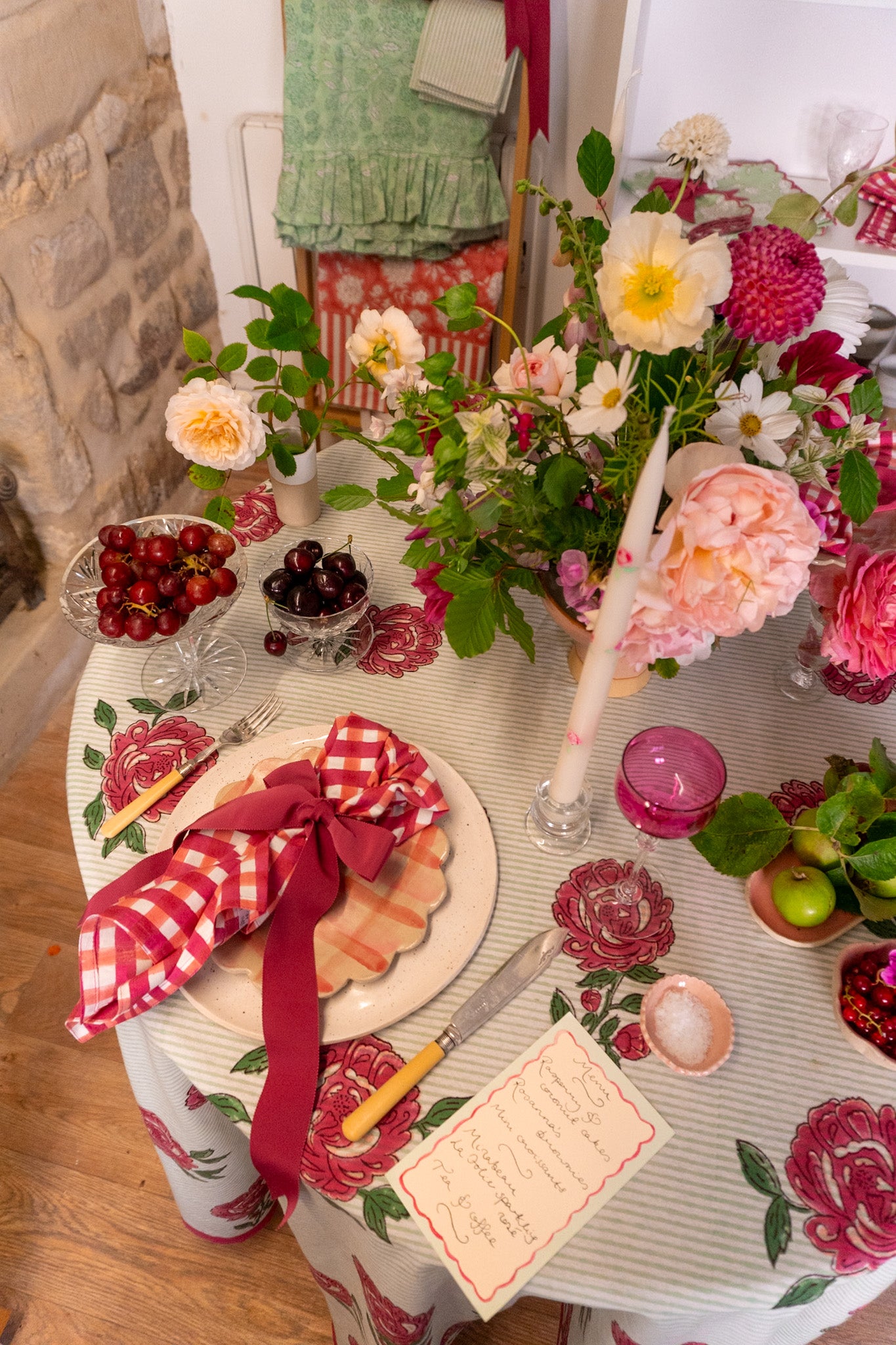 They introduced me to the wonderful Sophie of Starling Pots, who handmade the bud vases, bowls and plates - a perfect match for my gingham napkins.