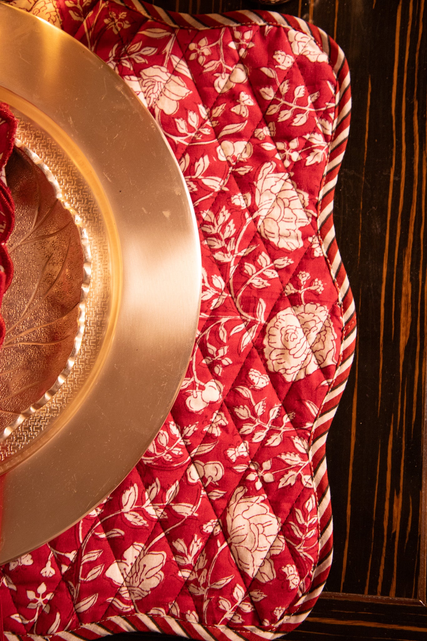 Every corner of this restaurant has its own mood and magic. I couldn't resist setting up a table for two - a time where placemats come into their own. These berry red ones add a splash of colour against the silverware.