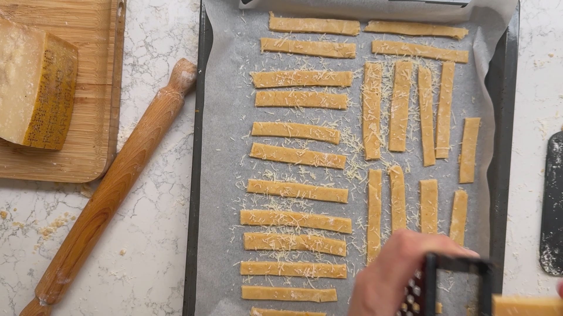 8. Sprinkle the cheese straws with extra grated cheese (according to my father, you can never have enough).